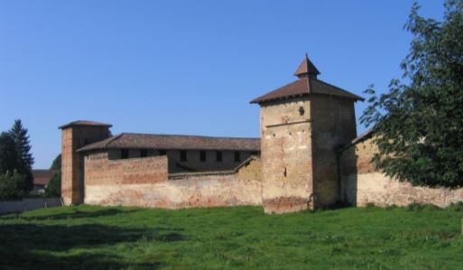 Sous l’ancien régime, Saint-Trivier-sur-Moignans était une baronnie importante regroupant cinq paroisses et douze seigneuries. Dès le XIVème siècle, vraisemblablement, la ville était défendue par un rempart fortifié. Il permettait aux seigneurs et à la population locale de se réfugier en cas de conflit. Cette enceinte en carrons savoyards était alors flanquée de quatorze tours et encerclée par un fossé en eau, alimenté par un étang voisin. Trois portes, aujourd’hui disparues, permettaient d’accéder à la ville : les portes de Lyon au sud, de Châtillon au nord et de Montmerle à l’ouest. Après le démantèlement des remparts, plusieurs constructions de la ville ont été élevées en partie avec les carrons provenant des murailles. En remontant la rue Montpensier jusqu’à la mairie puis en tournant à gauche, rue de la République, vous pourrez observer différents bâtiments construits avec de la brique dont une maison à encorbellement et un puits. Au gré des époques, des usages et des enjeux, ces remparts ont été considérablement modifiés. Ces changements s’observent aussi dans la cour de la ferme, propriété de la commune. Adossée aux remparts, la belle façade XVIIème, avec sa succession d’arcades, rappelle celle du château de Bouligneux. Au XVIIème siècle des magasins occupaient la partie basse des bâtiments et l’étage, accessible par un escalier rustique aux marches imposantes en bois, servait de grenier à grain pour la bourgade rurale. Cette utilisation publique a sauvé cette partie de remparts à la Révolution. Quant au pigeonnier, déjà mentionné en 1746, il a été bâti dans l’une des quatorze tours d’origine. Dans sa partie supérieure, il a gardé des nids et un reste d’échelle tournante.
